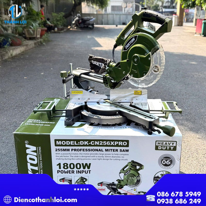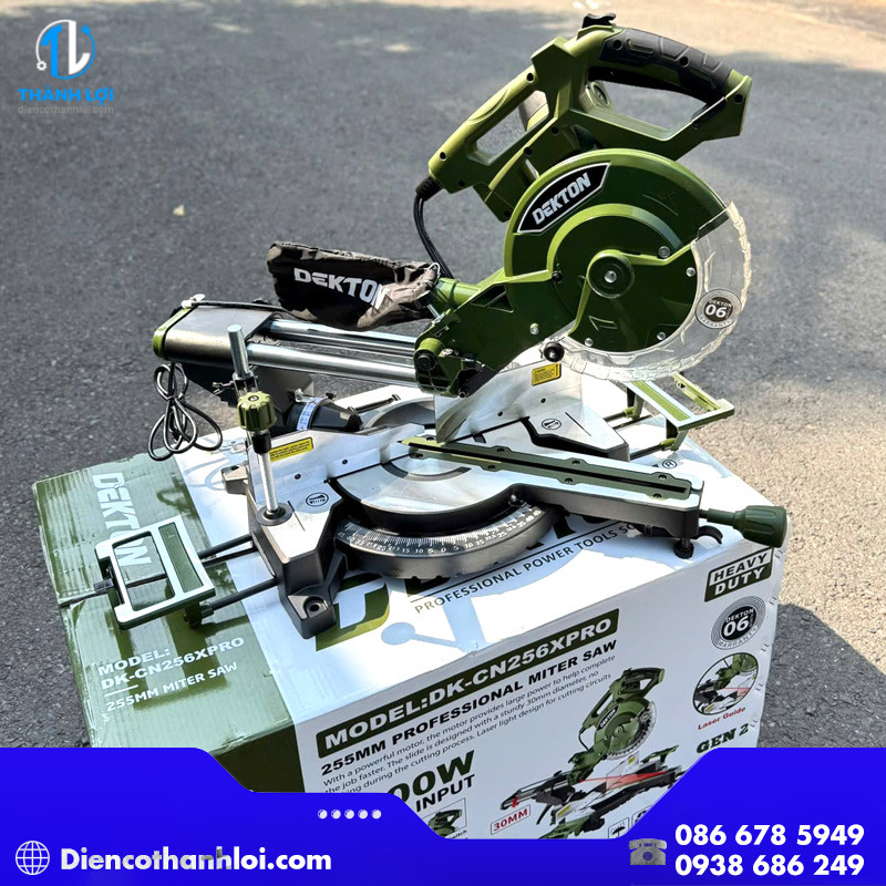 MÁY CẮT NHÔM TRƯỢT DEKTON DK-CN256XPRO được phân phối tại ĐIỆN CƠ THÀNH LỢI. Những sản phẩm do chúng tôi cung cấp cam kết 100% chính hãng, có tem chống giả rõ ràng, chất lượng ổn định và có chế độ bảo hành tốt nhất thị trường.