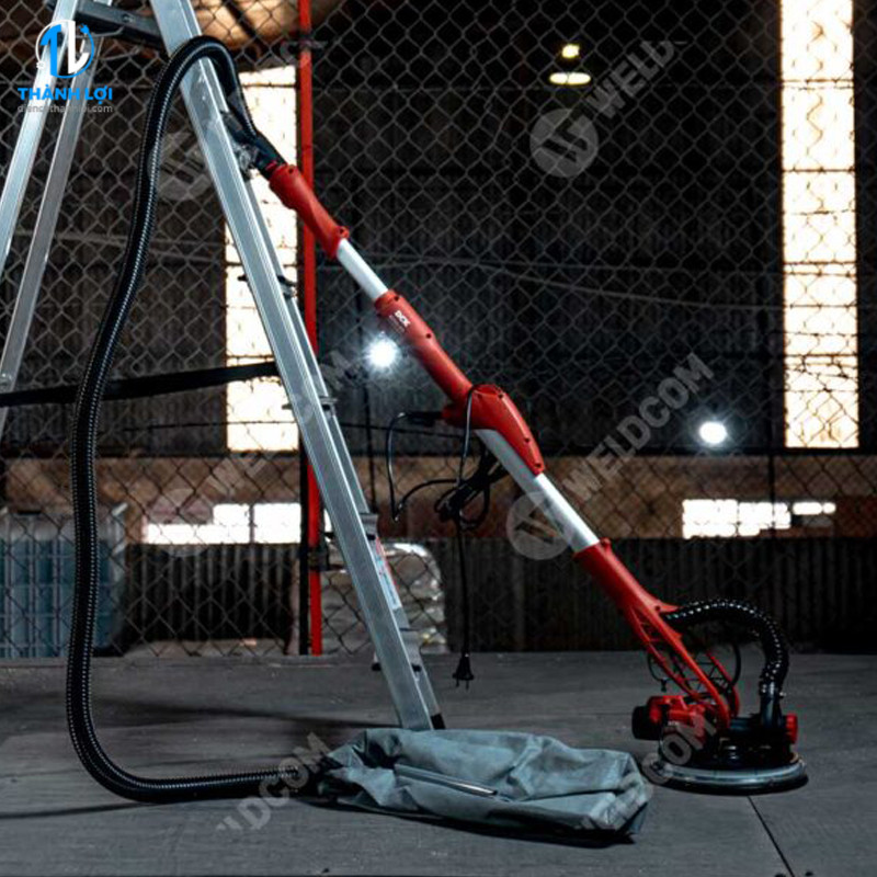 Đường kính đĩa 215 mm + giấy chà 225 mm giúp chà diện tích lớn mỗi lượt, rất phù hợp cho các bức tường rộng hoặc trần cao.
