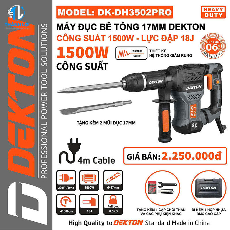 MÁY ĐỤC BÊ TÔNG DEKTON DK-DH3502PRO được phân phối tại ĐIỆN CƠ THÀNH LỢI . Những sản phẩm do chúng tôi cung cấp cam kết 100% chính hãng, có tem chống giả rõ ràng, chất lượng ổn định và có chế độ bảo hành tốt nhất thị trường.