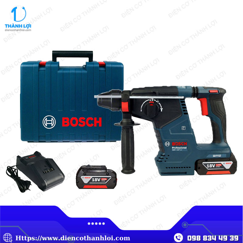 MÁY KHOAN BÊ TÔNG DÙNG PIN BOSCH GBH 187-LI được phân phối tại ĐIỆN CƠ THÀNH LỢI . Những sản phẩm do chúng tôi cung cấp cam kết 100% chính hãng, có tem chống giả rõ ràng, chất lượng ổn định và có chế độ bảo hành tốt nhất thị trường.