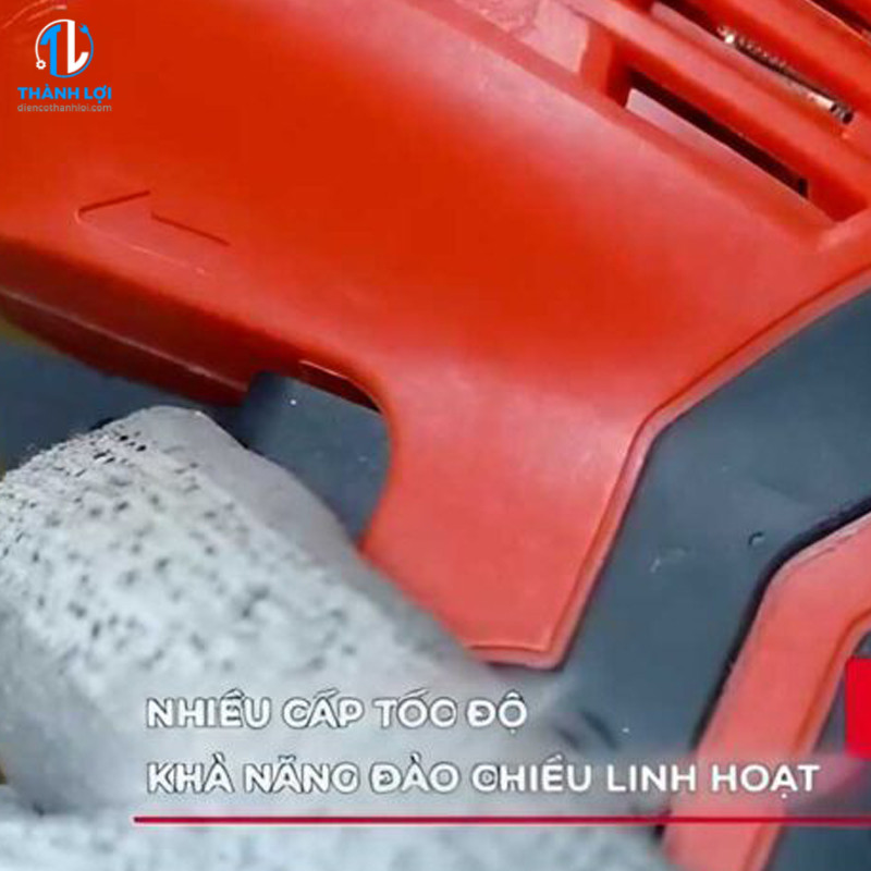 Máy có nút khoá công tắc, cho phép giữ máy chạy liên tục mà không cần giữ cò — giúp giảm mỏi tay khi khoan lâu.