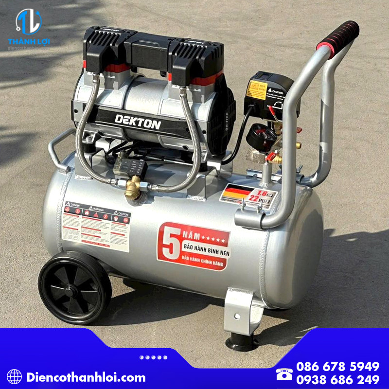 Máy nén khí không dầu Dekton DK-AC3925ProMax là dòng máy nén khí thế hệ mới được thiết kế để đáp ứng nhu cầu sử dụng khí nén trong gia đình, tiệm sửa xe, xưởng cơ khí hoặc các công việc DIY. Máy sở hữu công suất 1.8HP, bình chứa 23 lít và lưu lượng khí 175L/phút, mang lại hiệu suất làm việc ổn định và mạnh mẽ.