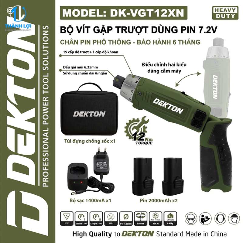 MÁY VẶN VÍT GẬP DÙNG PIN DEKTON DK-VGT12XN được phân phối tại ĐIỆN CƠ THÀNH LỢI . Những sản phẩm do chúng tôi cung cấp cam kết 100% chính hãng, có tem chống giả rõ ràng, chất lượng ổn định và có chế độ bảo hành tốt nhất thị trường.