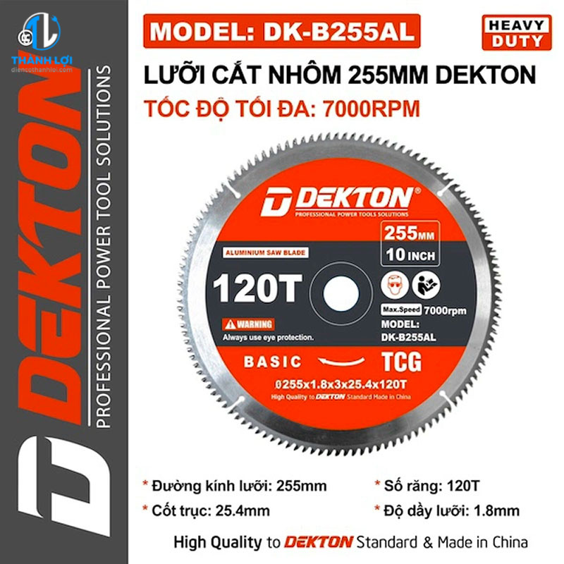 LƯỠI CẮT NHÔM DEKTON DK-B255AL được phân phối tại ĐIỆN CƠ THÀNH LỢI. Những sản phẩm do chúng tôi cung cấp cam kết 100% chính hãng, có tem chống giả rõ ràng, chất lượng ổn định và có chế độ bảo hành tốt nhất thị trường.