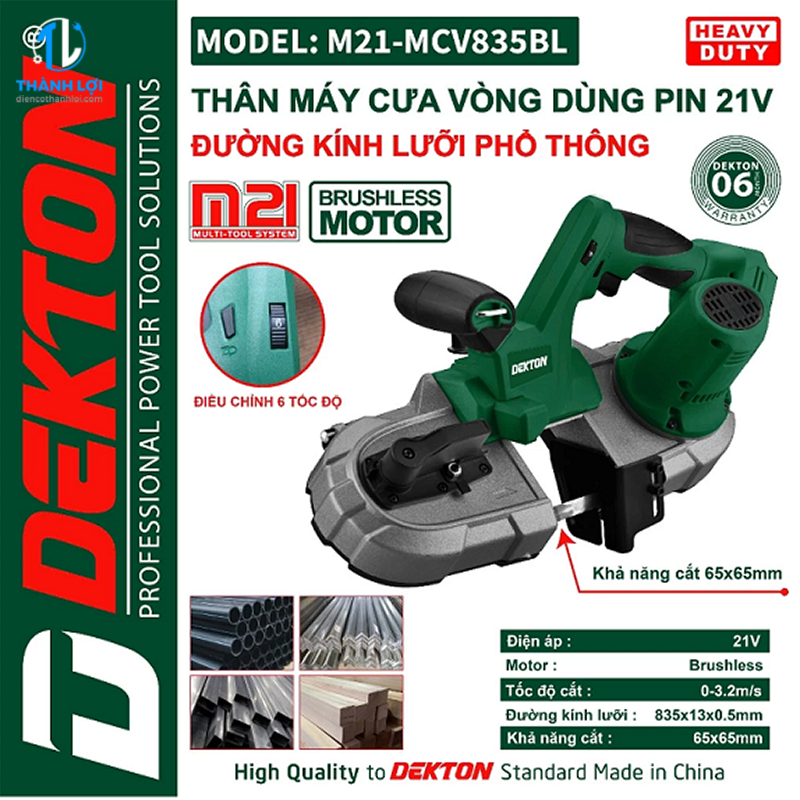 MÁY CƯA VÒNG DÙNG PIN DEKTON M21-MCV835BL được phân phối tại ĐIỆN CƠ THÀNH LỢI . Những sản phẩm do chúng tôi cung cấp cam kết 100% chính hãng, có tem chống giả rõ ràng, chất lượng ổn định và có chế độ bảo hành tốt nhất thị trường.