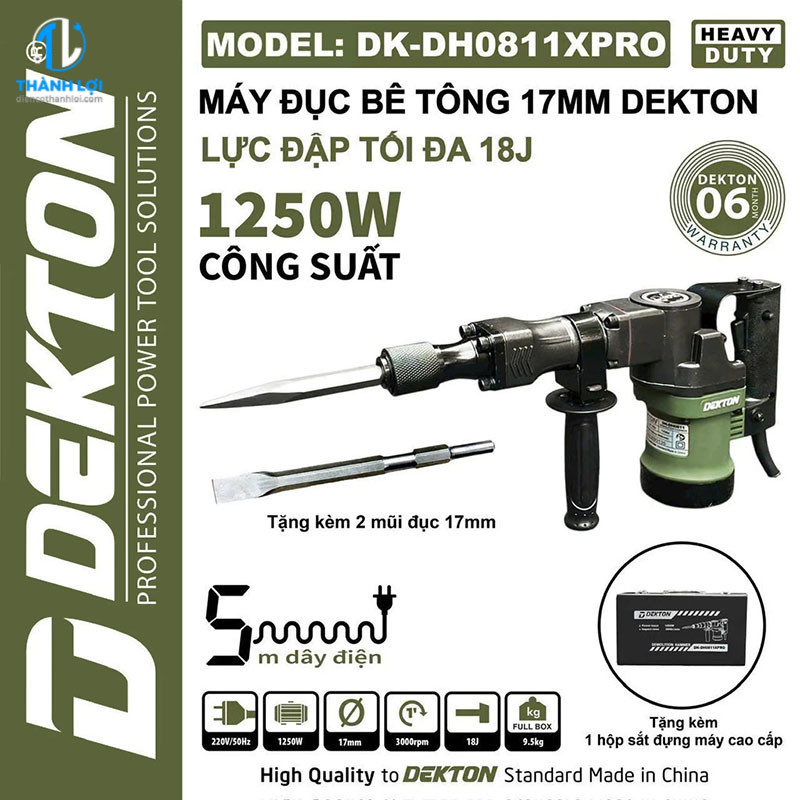 MÁY ĐỤC BÊ TÔNG DEKTON DK-DH0811XPRO được phân phối tại ĐIỆN CƠ THÀNH LỢI . Những sản phẩm do chúng tôi cung cấp cam kết 100% chính hãng, có tem chống giả rõ ràng, chất lượng ổn định và có chế độ bảo hành tốt nhất thị trường.