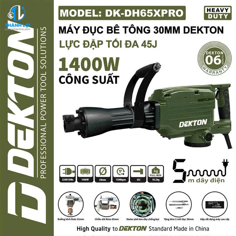 MÁY ĐỤC BÊ TÔNG DEKTON DK-DH65XPRO được phân phối tại ĐIỆN CƠ THÀNH LỢI . Những sản phẩm do chúng tôi cung cấp cam kết 100% chính hãng, có tem chống giả rõ ràng, chất lượng ổn định và có chế độ bảo hành tốt nhất thị trường.
