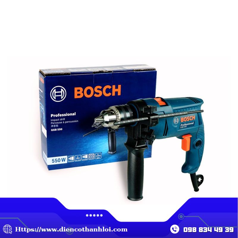 Máy khoan Bosch GSB 550 được phân phối tại ĐIỆN CƠ THÀNH LỢI . Những sản phẩm do chúng tôi cung cấp cam kết 100% chính hãng, có tem chống giả rõ ràng, chất lượng ổn định và có chế độ bảo hành tốt nhất thị trường.