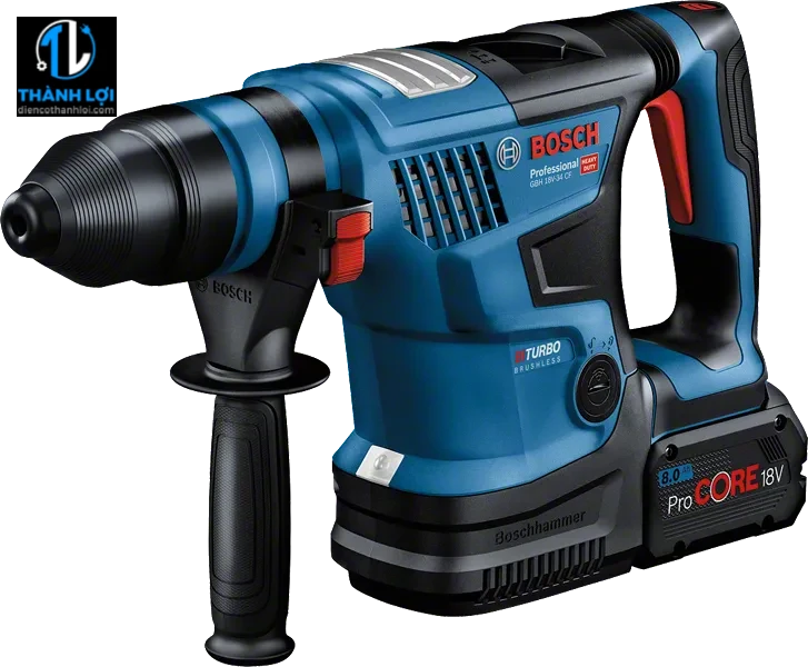 - Máy khoan búa pin Bosch GBH 18V-34 CF (mã 0611914082) là dòng rotary hammer không dây sử dụng công nghệ BITURBO Brushless, được thiết kế để đối đầu với các công việc khoan búa, đục phá bê tông, gạch, đá.
