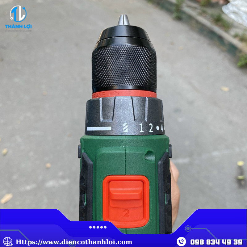 - Đầu kẹp auto-lock & thay mũi khoan dễ dàng — tiện lợi cho người dùng, kể cả không chuyên.