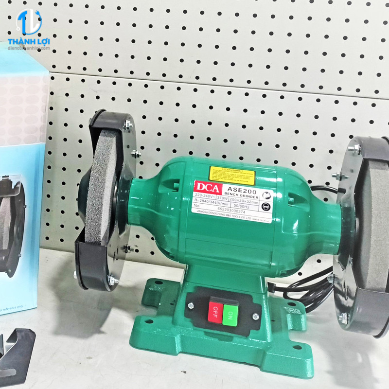 Máy mài 2 đá 200mm công suất 370W DCA ASE200, được thiết kế để đáp ứng nhu cầu mài mòn, sắc bén cho các vật dụng kim loại, dụng cụ cơ khí, hoặc phục vụ trong các xưởng sửa chữa nhỏ và gia đình.