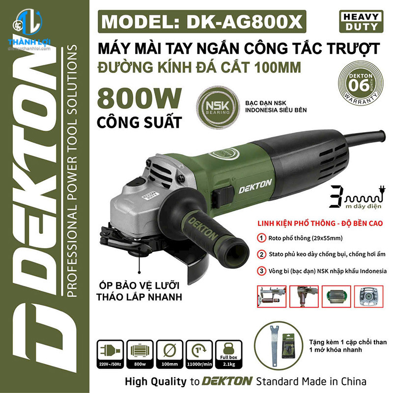 MÁY MÀI DEKTON DK-AG800X được phân phối tại ĐIỆN CƠ THÀNH LỢI . Những sản phẩm do chúng tôi cung cấp cam kết 100% chính hãng, có tem chống giả rõ ràng, chất lượng ổn định và có chế độ bảo hành tốt nhất thị trường.