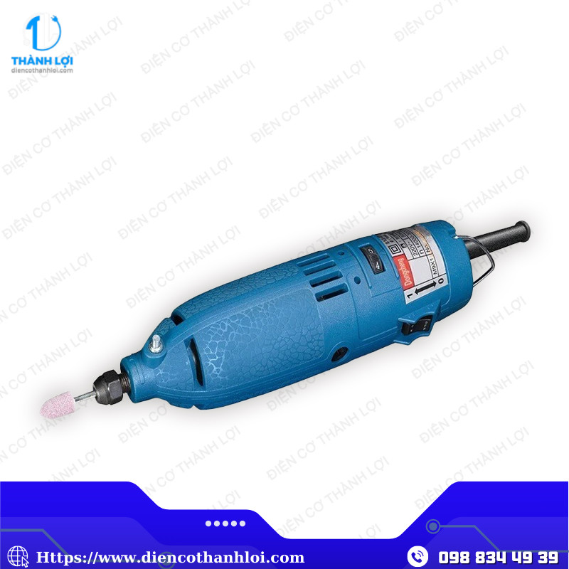 Máy sử dụng đầu kẹp mũi Ø3mm, phù hợp với các mũi mài khuôn và phụ kiện chuyên dụng, giúp xử lý linh hoạt các chi tiết nhỏ, tinh tế trong cơ khí hoặc sản xuất đồ thủ công.