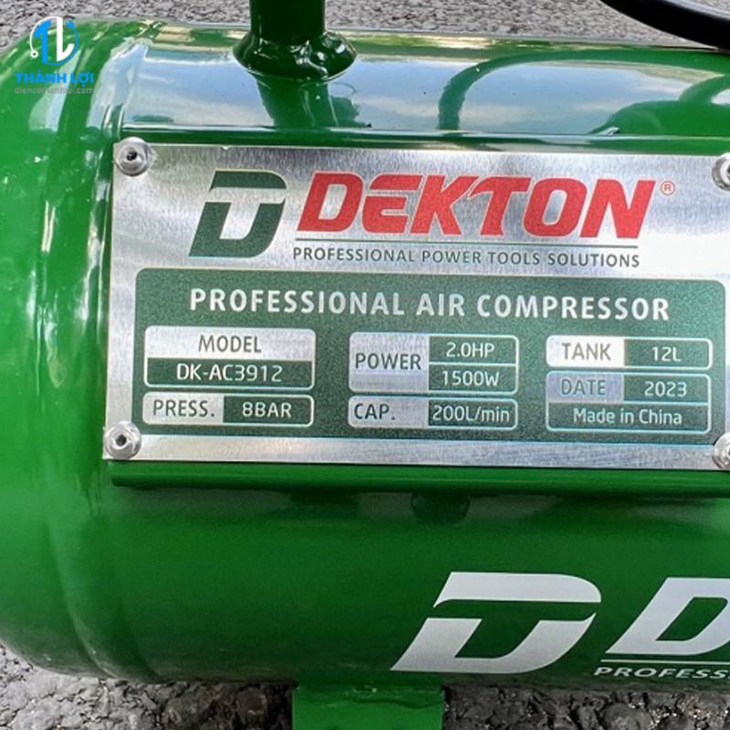 Máy nén khí Dekton DK-AC3912 là dòng máy nén khí không dầu có thiết kế nhỏ gọn, tiện di chuyển và phù hợp cho nhiều nhu cầu từ gia đình, tiệm sửa xe nhỏ, đến xưởng – công trình cần khí nén nhanh gọn. Máy sử dụng công suất 2.0 HP (≈1500 W), bình chứa 12 lít, với lưu lượng khí khoảng 200 lít/phút, áp lực làm việc 8 bar.