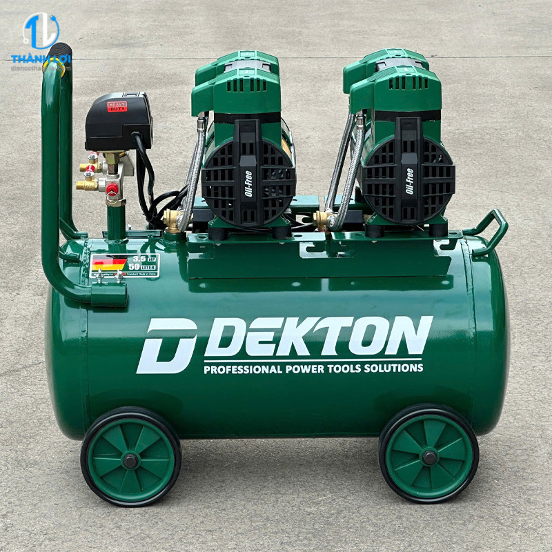 Máy nén khí không dầu Dekton DK-AC3950PRO thuộc dòng PRO Series cao cấp, được thiết kế cho nhu cầu sử dụng chuyên nghiệp trong gara ô tô, tiệm sửa chữa, xưởng mộc – nội thất và cơ khí. Máy sở hữu công suất 3.5HP, bình chứa 50 lít, đáp ứng được những công việc đòi hỏi khí nén liên tục, mạnh mẽ và ổn định.