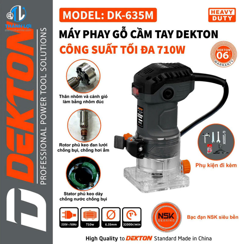 MÁY PHAY GỖ DEKTON DK-635M được phân phối tại ĐIỆN CƠ THÀNH LỢI . Những sản phẩm do chúng tôi cung cấp cam kết 100% chính hãng, có tem chống giả rõ ràng, chất lượng ổn định và có chế độ bảo hành tốt nhất thị trường.