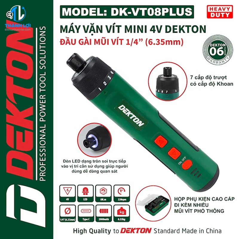 THÔNG SỐ KỸ THUẬT MÁY VẶN VÍT MINI DÙNG PIN DEKTON DK-VT08PLUS